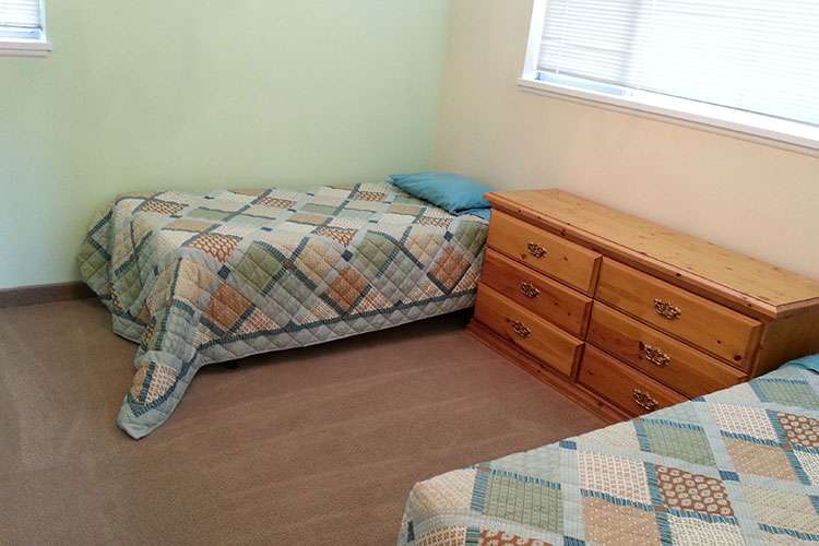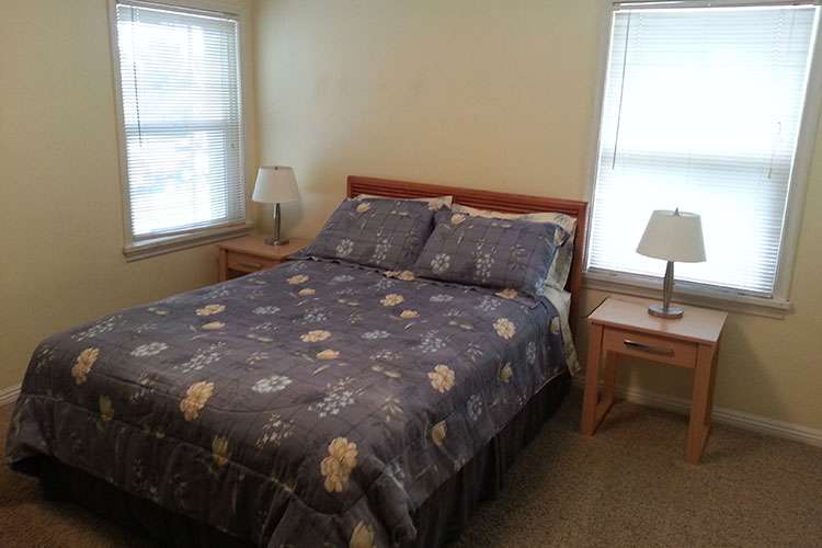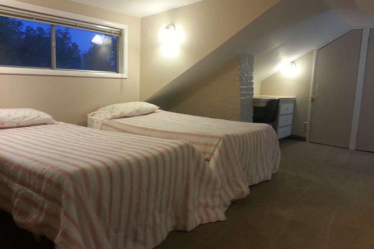 The downstairs apartment (White House Basement) has two large bedrooms (one shared and one private), a large living room, kitchen, bathroom, and laundry storage room for three female students.
